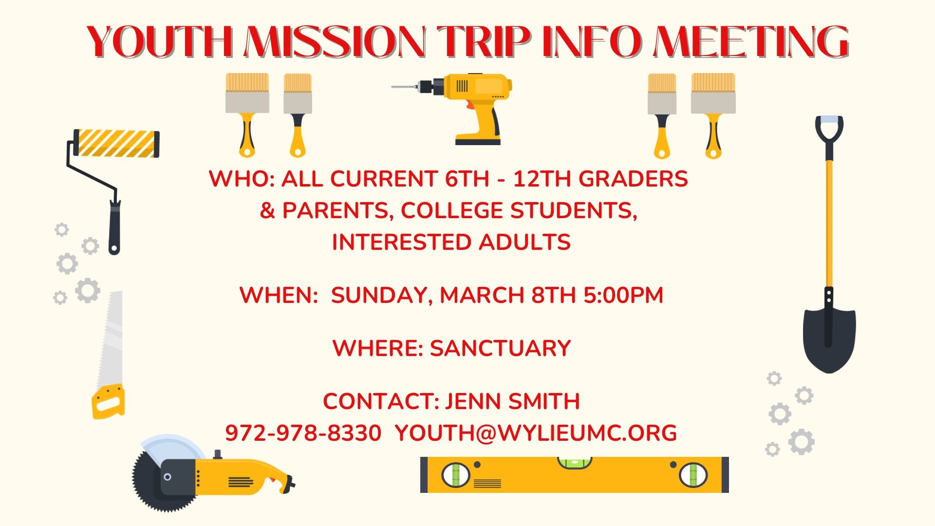 Sharing the love of Christ with all people we meet, learning and growing in our personal relationships with Christ, and being the hands and feet of Christ at every opportunity and in every moment.